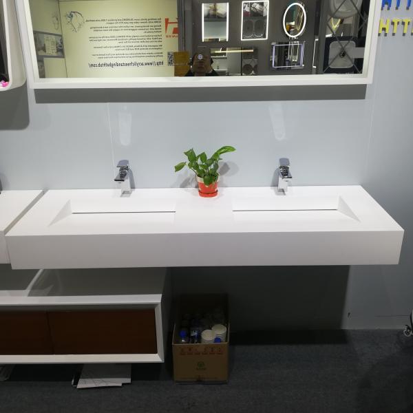 Double bowl Wall Hung Basin Bathroom Vanity Sink 1400*480*150mm Images |